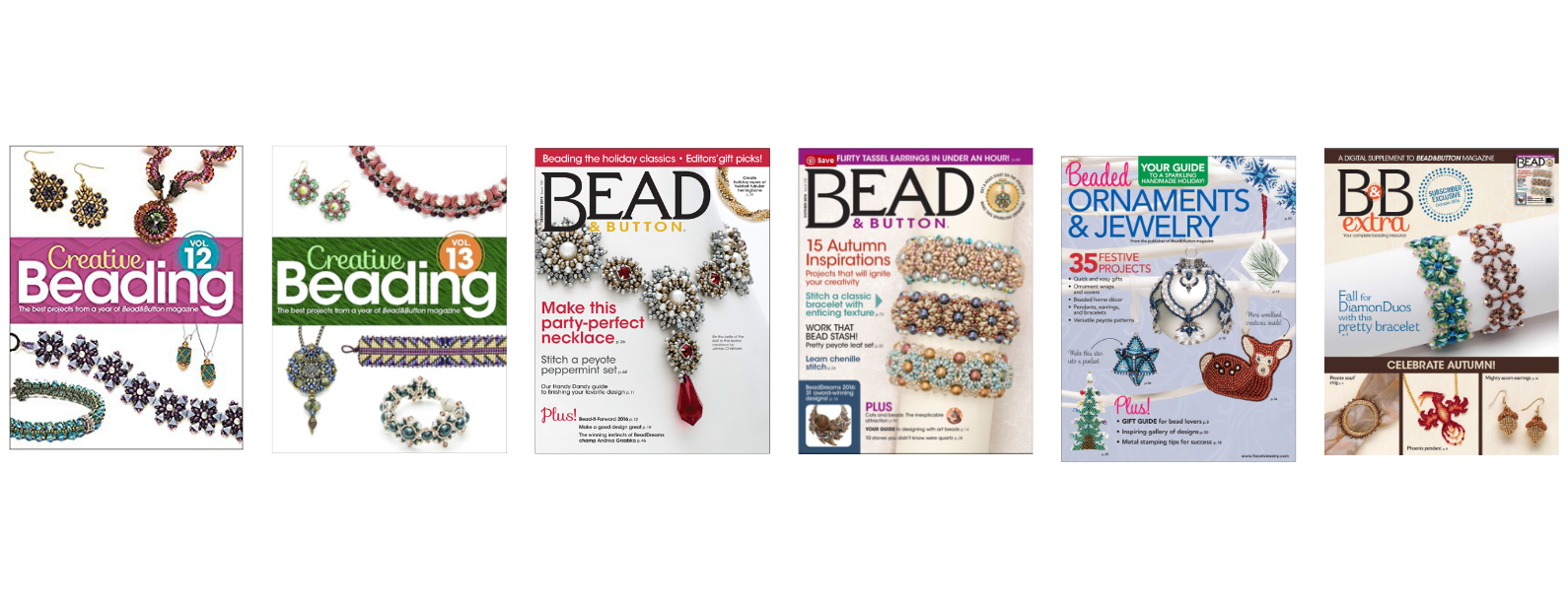 We have been fortunate to have many of our original designs published in Bead & Button Magazines over the years. They also included two of our designs in their hardcover Creative Beading books (volumes 12 & 13)