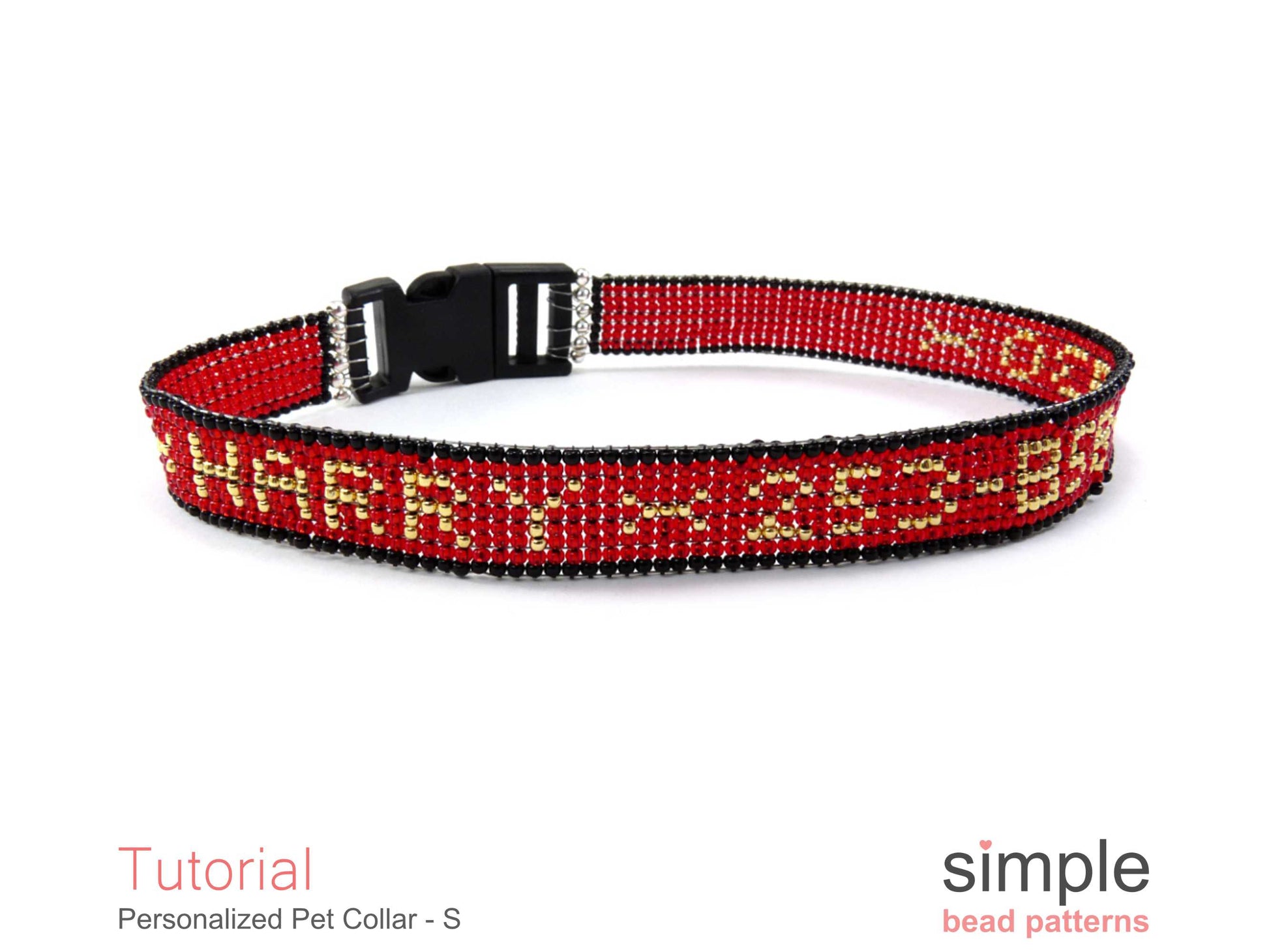 This detailed beading pattern includes a recommended materials list, patterns (both wide & narrow) for each alphabet letter, and numbers 0-9 as well as some punctuation marks and lots of fun symbols, helpful tips for choosing successful color schemes, bead types, and finishes, over 60 high-resolution full-color photos, and easy-to-follow step-by-step directions to ensure your success and enjoyment. Be sure to check out our beading patterns for Large, Medium, and Extra Small pet collars for your other fur babies.