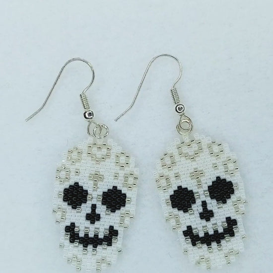 Learn how to make this "Sparkly Sugar Skull" design into festive earrings, a pendant necklace, and a beaded brooch, perfect for your Day of the Dead and/or Halloween festivities. This design can be made up in either size 15/0s or 11/0s - the choice is yours. And, while shaped peyote is typically a bit challenging, don’t be scared to try this one. We show you how to stitch up every row and do every turnaround - making this project suitable for beaders of all skill levels - including beginners. Here’s to remembering our loved ones with a joyful heart.